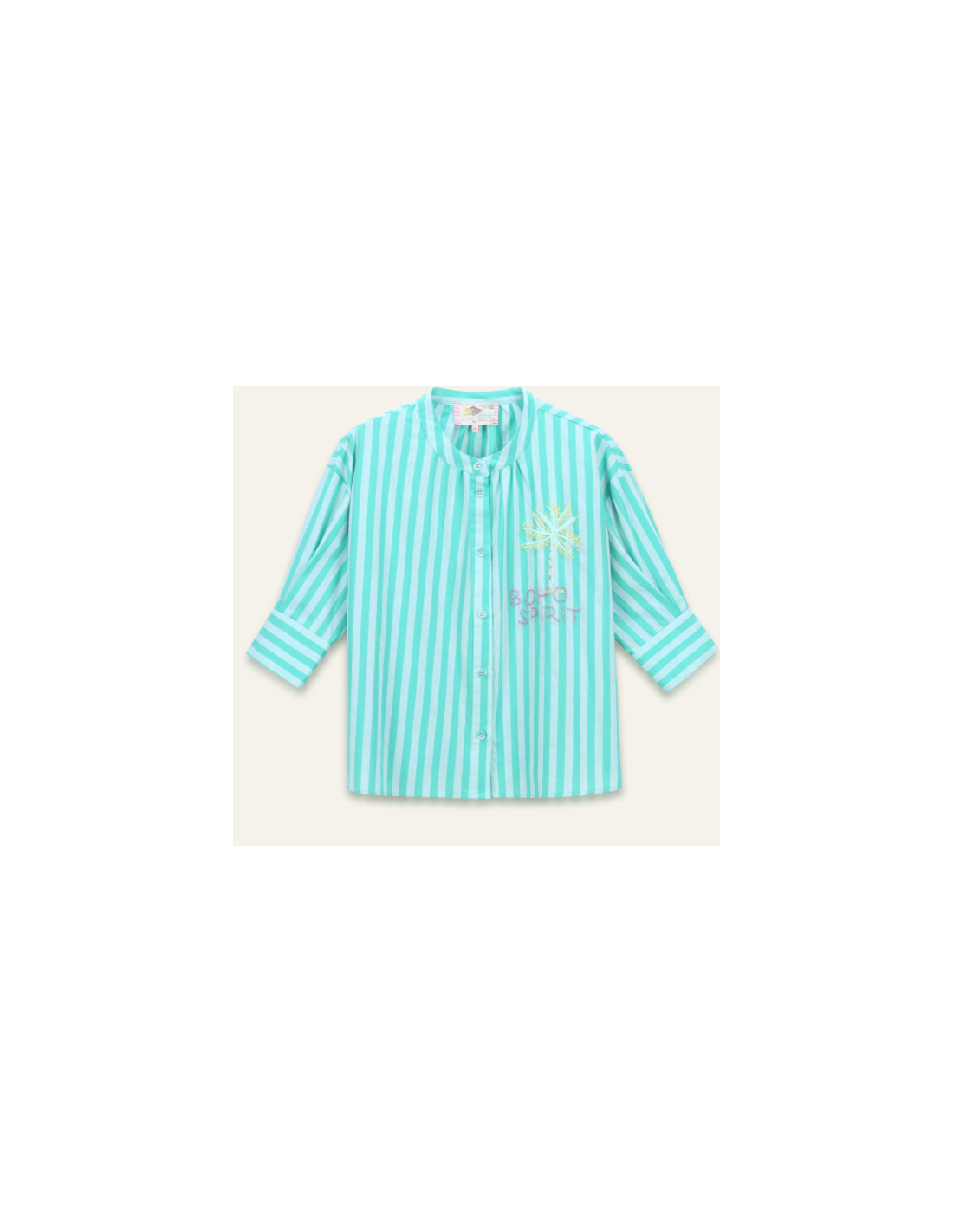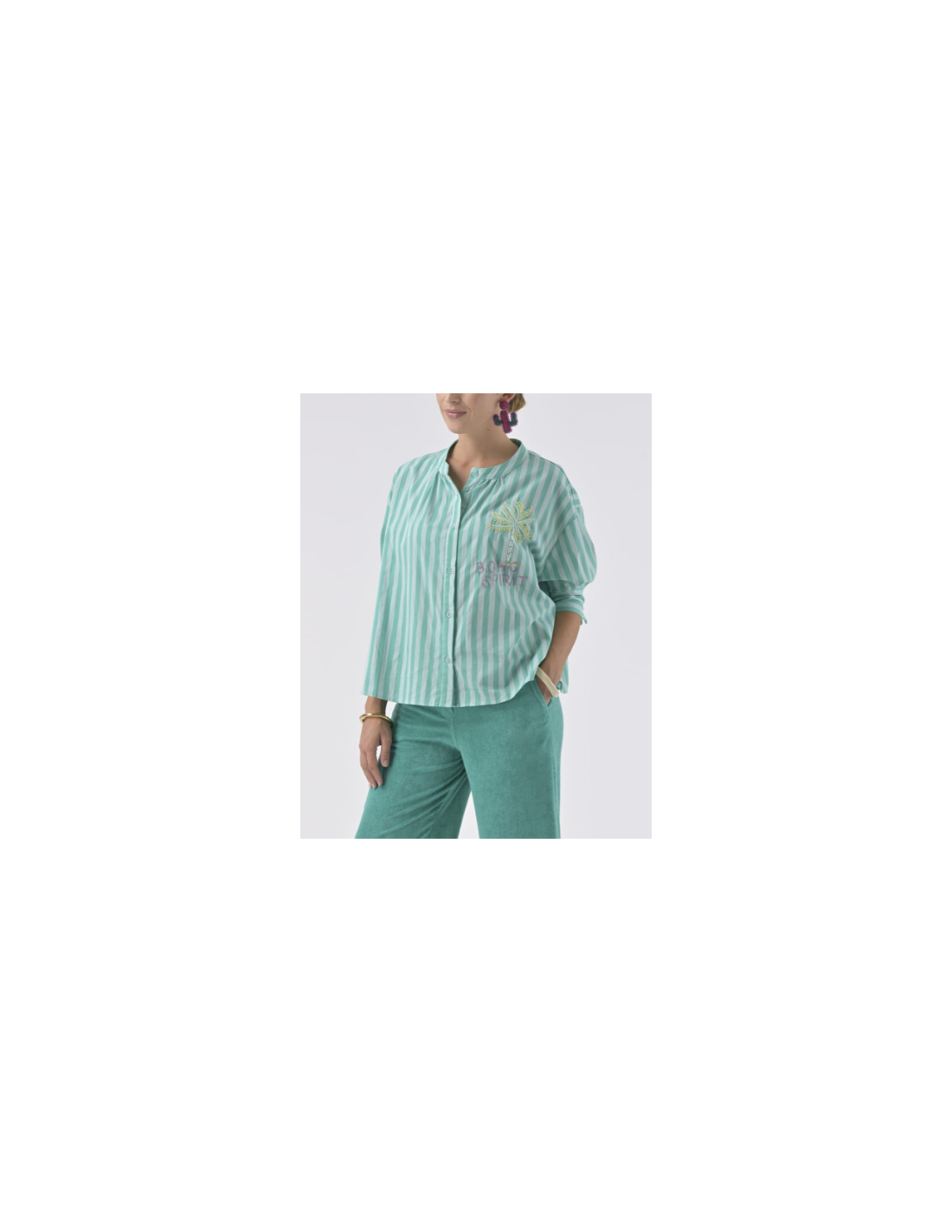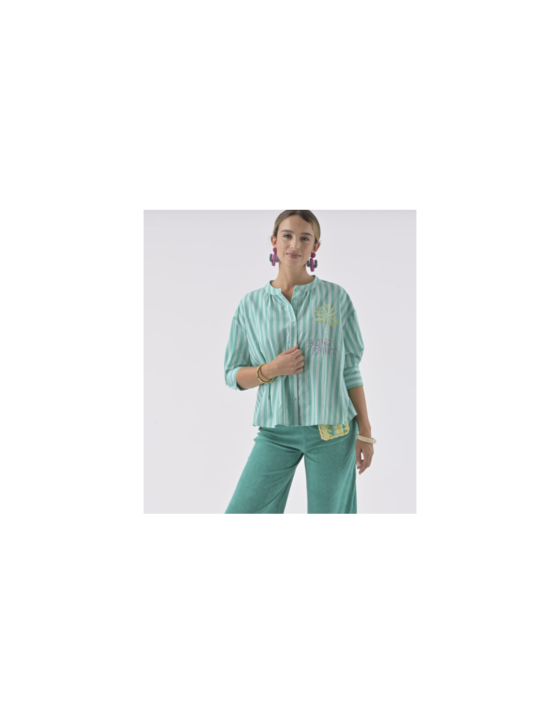 Léger et agréable à porter, ce modèle à rayures turquoise séduit par sa délicate broderie perlée, une pièce bohème chic, parfaite pour cette saison estivale