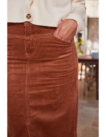 Ce type de jupe est idéale pour la saison automne hiver, alliant élégance et confort. Son design classique et polyvalent vous permettra de l'associer facilement avec différentes tenues .L'effet velours côtelé de cette jupe apporte une touche d'élégance à ce vêtement.