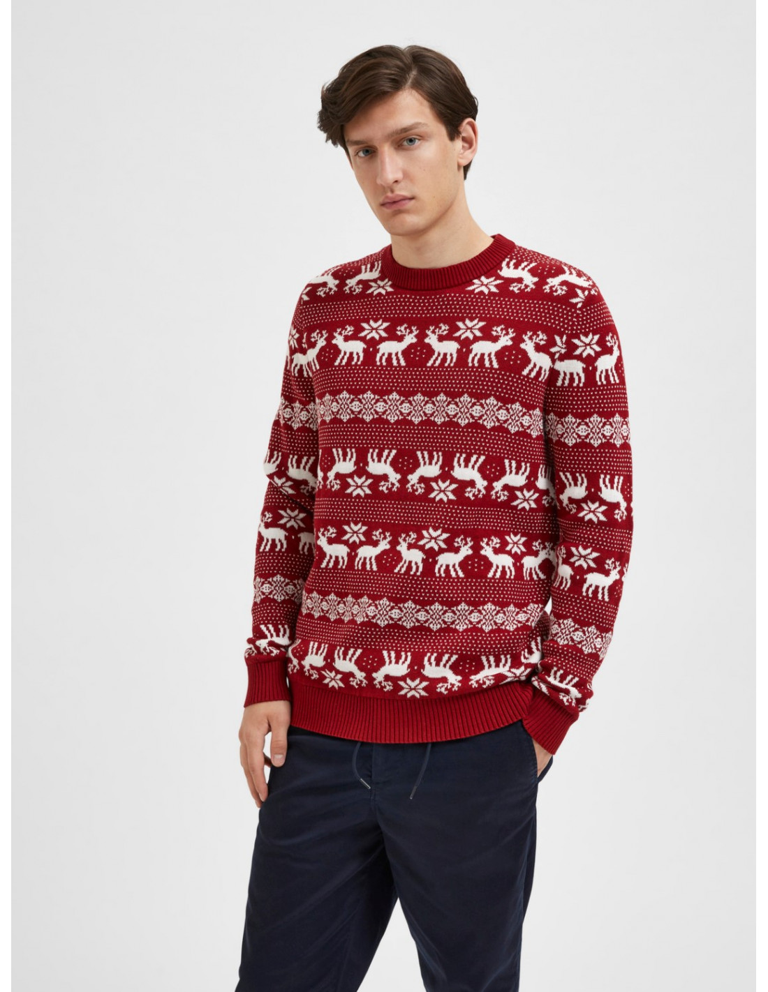 On adore le pull de noël Selected, on aime son coloris et ses motifs renne et flocons, à adopter pour ce noël!