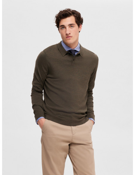 Pull Polo-Selected-TOWN MERINO FOREST NIGHT