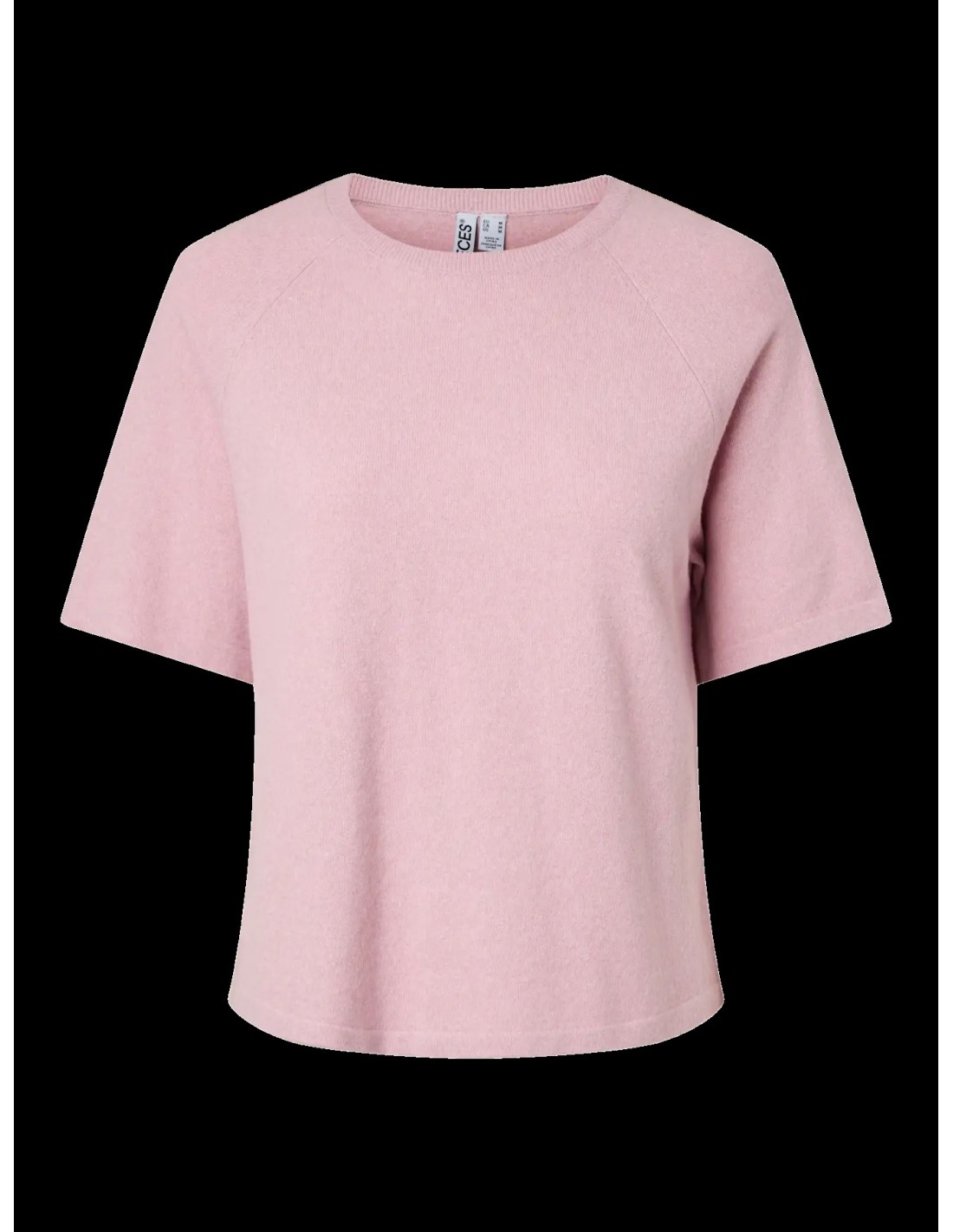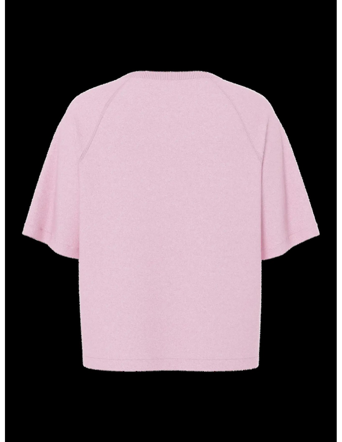 Pull rose à manches courtes, doux et confortable, avec col rond et coupe fluide. Parfait pour un look simple, féminin et tendance.